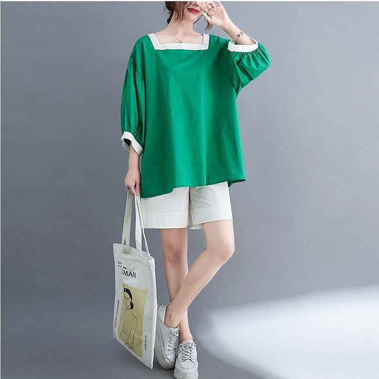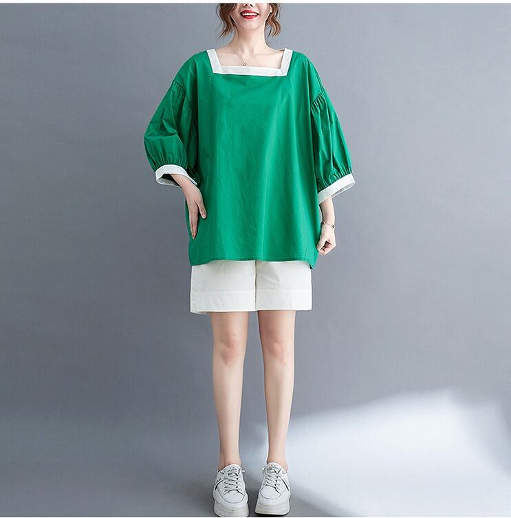 【春夏新作】ファッショントップス♪グリーン/ホワイト2色展開◆#sebmmt-24839a7
