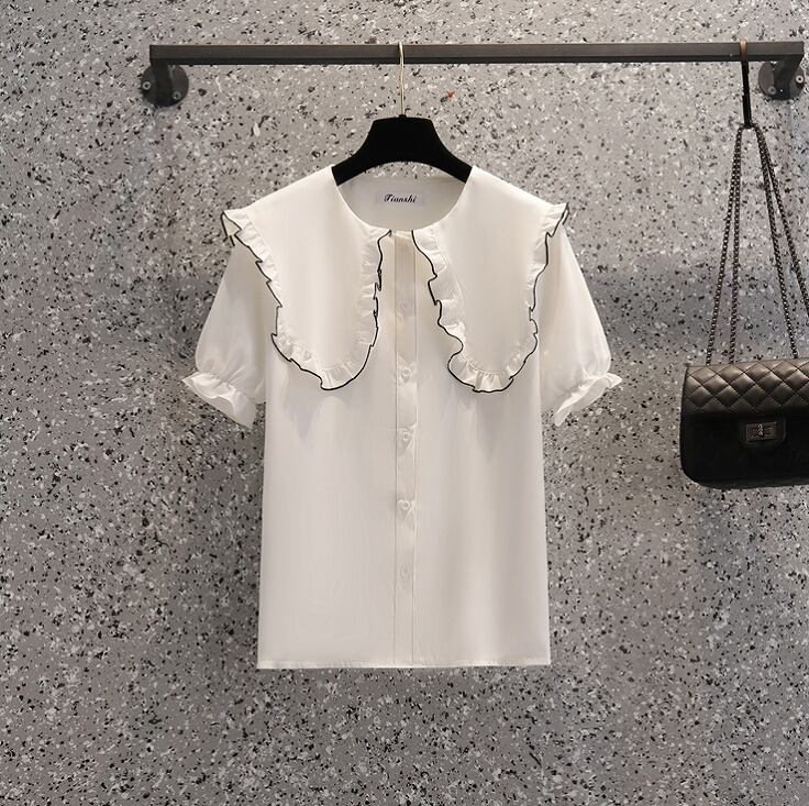 【大きいサイズL-4XL】【春夏新作】ファッショントップス♪ホワイト/ブラック2色展開◆