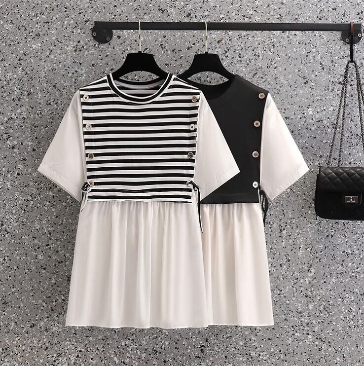 【大きいサイズL-4XL】【春夏新作】ファッショントップス♪ホワイト/ブラック2色展開◆