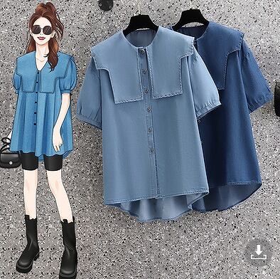 【大きいサイズL-4XL】【春夏新作】ファッショントップス♪ダークブルー/ライトブルー2色展開◆
