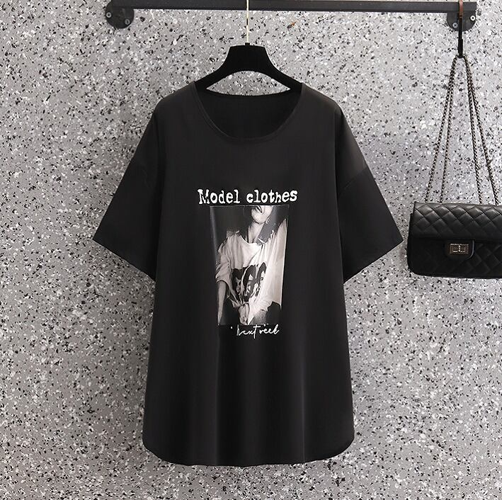 【大きいサイズL-4XL】【春夏新作】ファッションTシャツ♪ホワイト/ブラック2色展開◆
