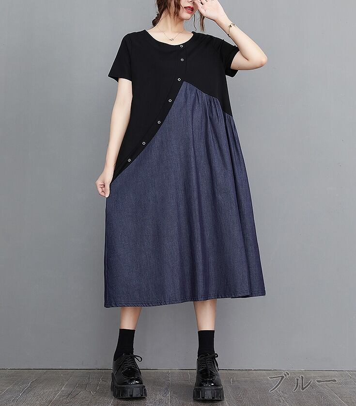 【春夏新作】ファッションワンピース♪ブラック/ブルー2色展開◆