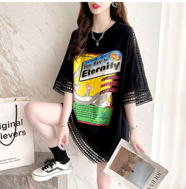 【春夏新作】ファッションTシャツ♪ホワイト/ブラック2色展開◆#stbfot-2f26517