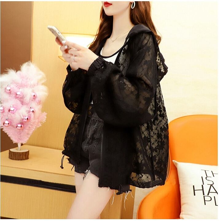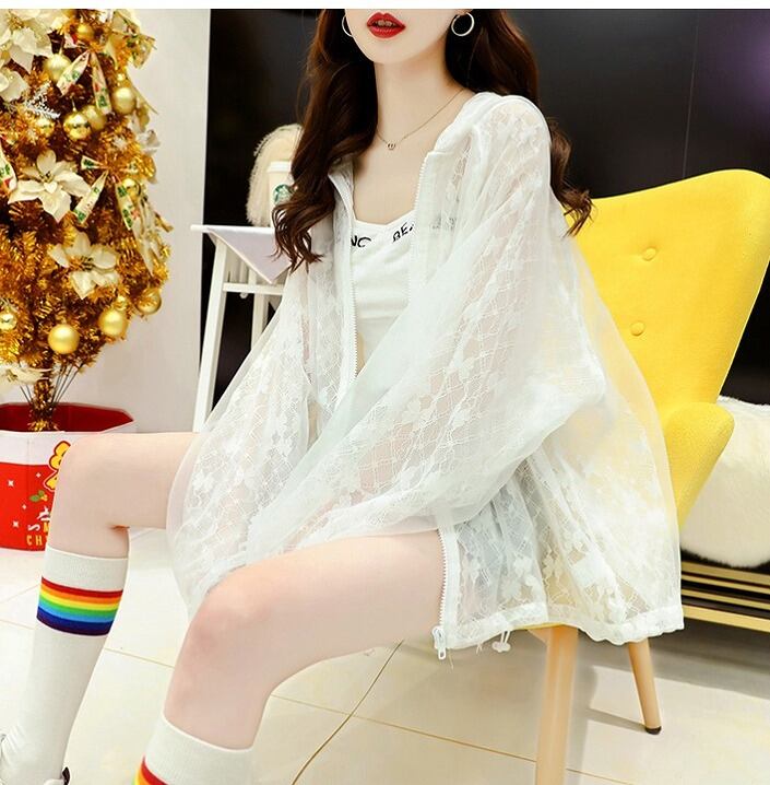 【春夏新作】日焼け防止シャツファッショントップス♪ホワイト/ブラック2色展開◆#stbfot-2f65517 パーカー