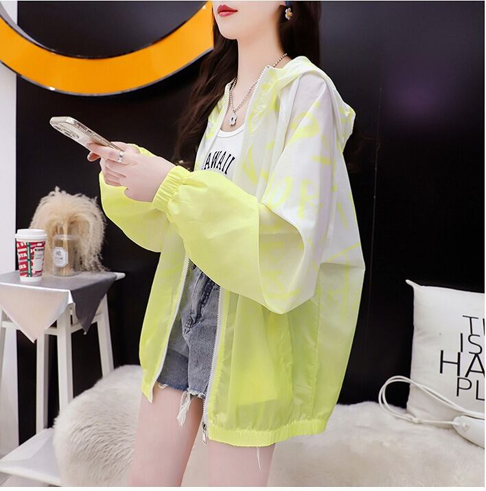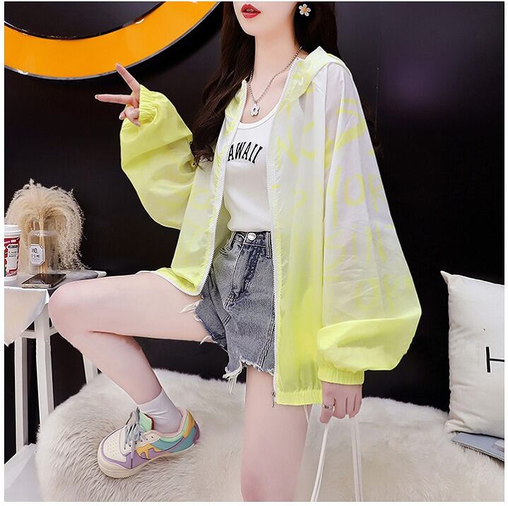 【春夏新作】日焼け防止シャツファッショントップス♪グリーン/イエロー2色展開◆#stbfot-2f17517