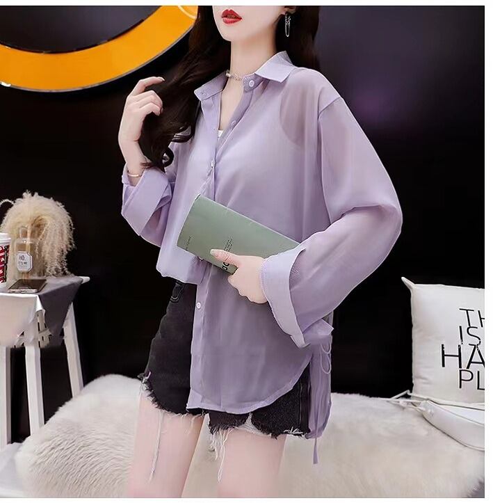 【春夏新作】日焼け防止シャツ ファッショントップス♪ホワイト/パープル2色展開◆
