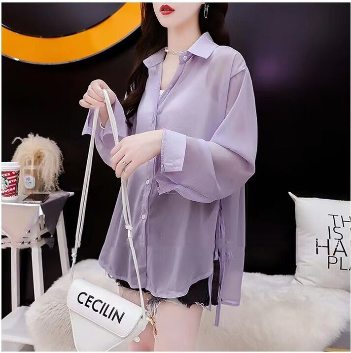 【春夏新作】日焼け防止シャツ ファッショントップス♪ホワイト/パープル2色展開◆#stbfot-2f07517