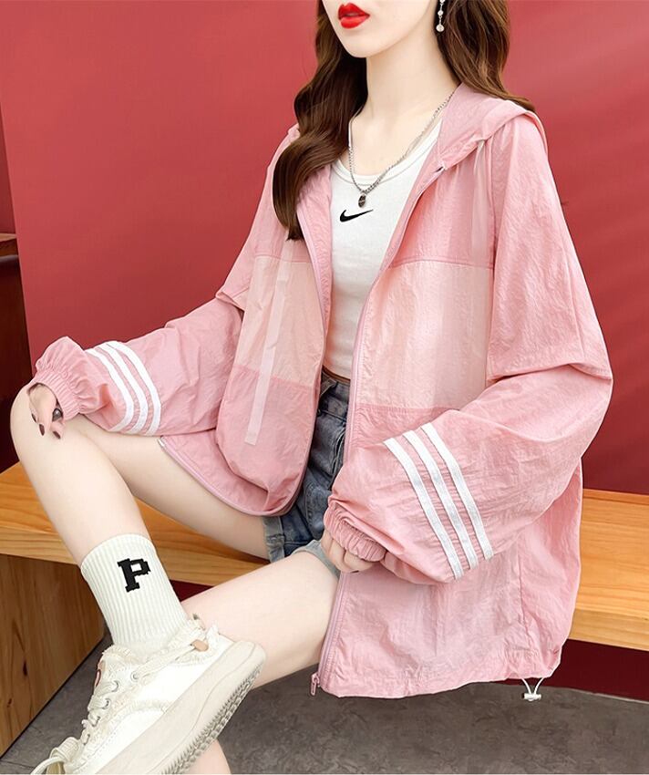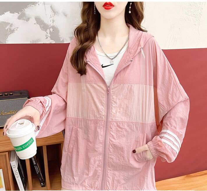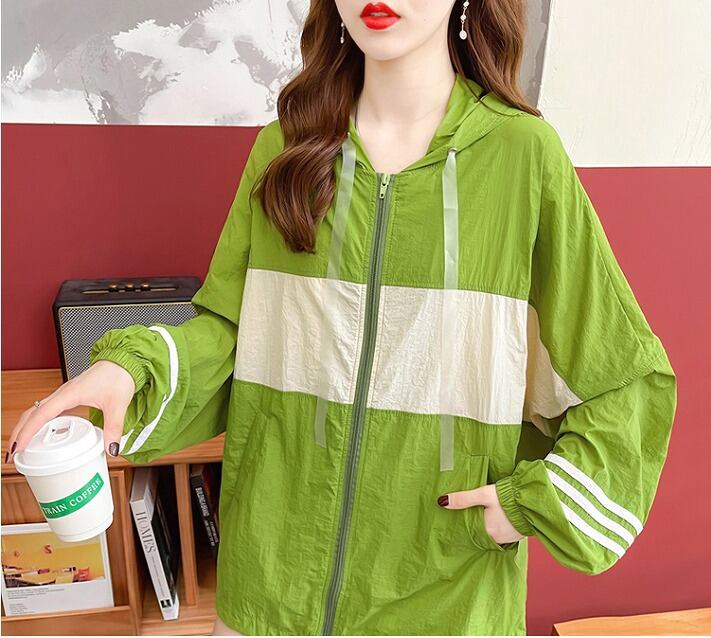 【春夏新作】日焼け防止シャツファッショントップス♪グリーン/ピンク2色展開◆