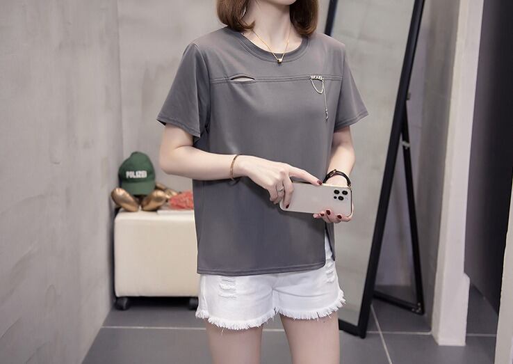 【大きいサイズXL-4XL】【春夏新作】ファッションTシャツ♪ブラック/グレー2色展開◆#sctmsm-288067