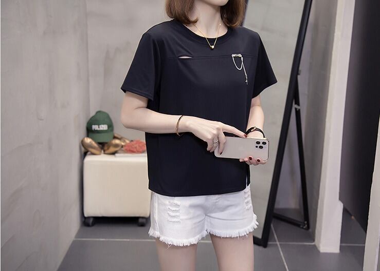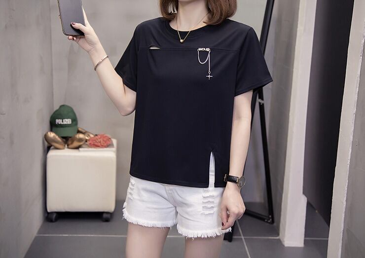 【大きいサイズXL-4XL】【春夏新作】ファッションTシャツ♪ブラック/グレー2色展開◆