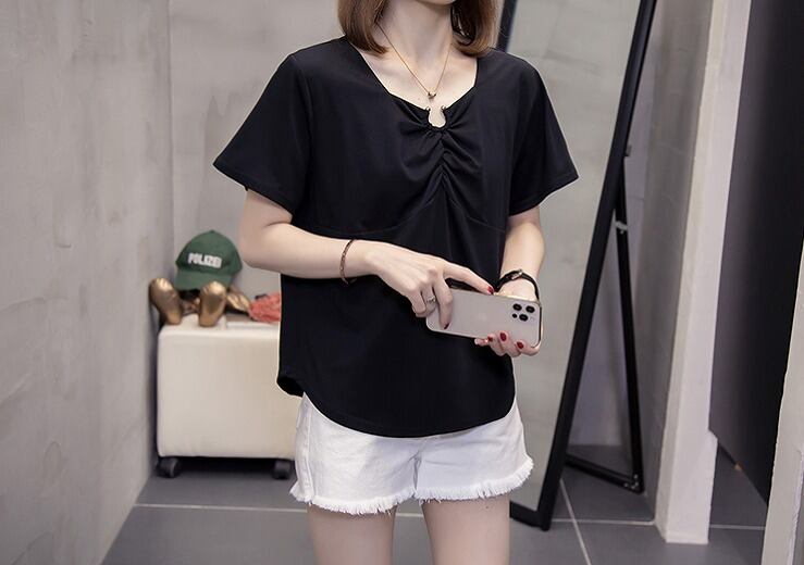 【大きいサイズXL-4XL】【春夏新作】ファッションTシャツ♪ブラック/グレー2色展開◆