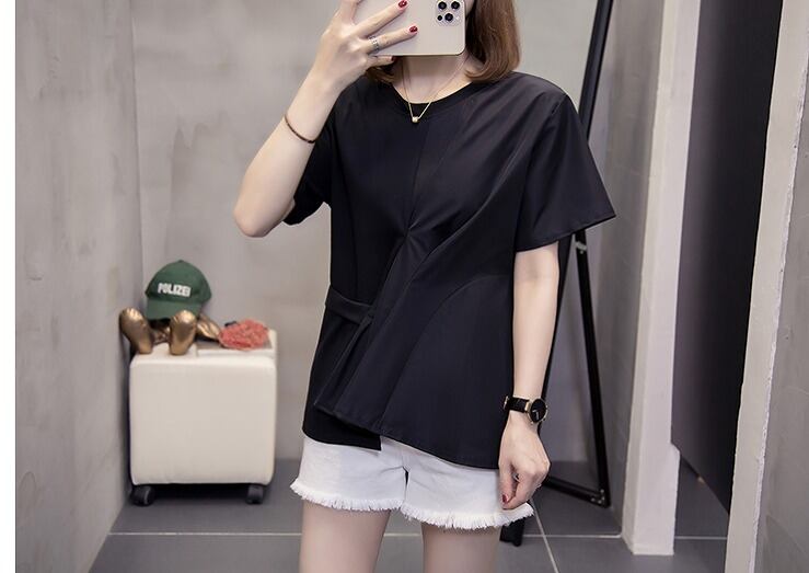 【大きいサイズXL-4XL】【春夏新作】ファッションTシャツ♪ブラック/ホワイト2色展開◆