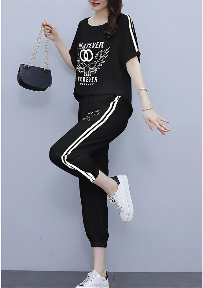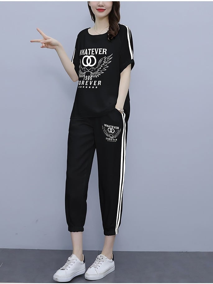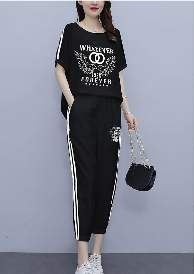 【大きいサイズL-5XL】【春夏新作】ファッション/上下セットTシャツ♪ホワイト/ブラック2色展開◆