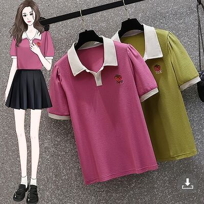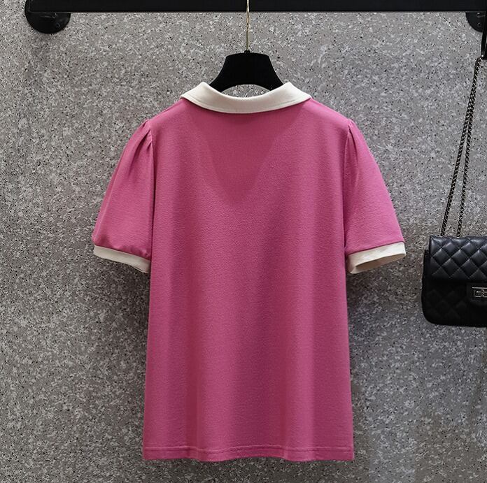【大きいサイズL-4XL】【春夏新作】ファッションTシャツ♪ローズピンク/グリーン2色展開◆