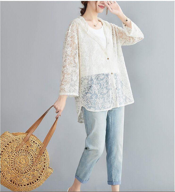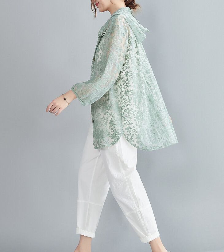 【春夏新作】日焼け防止シャツファッションワイシャツ♪ベージュ/グリーン2色展開◆#sebmvo-22377