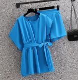 【大きいサイズM-4XL】ファッション/上下セットトップス♪ブルー/ホワイト2色展開◆