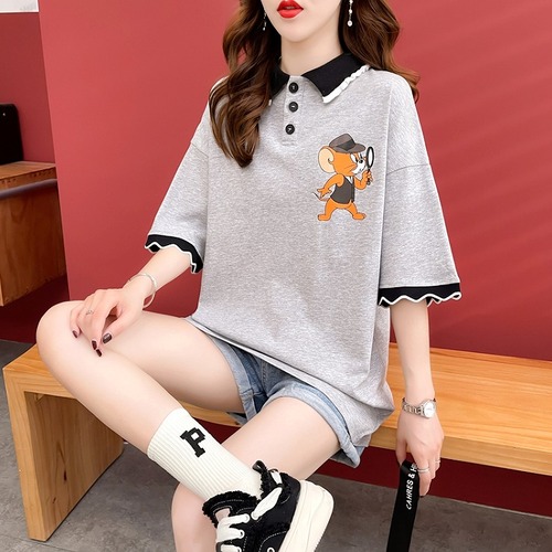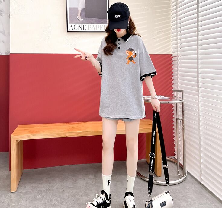【春夏新作】ファッションTシャツ♪グレー/ホワイト2色展開◆#sebotv-2m16097