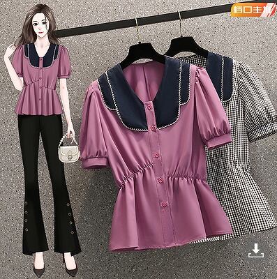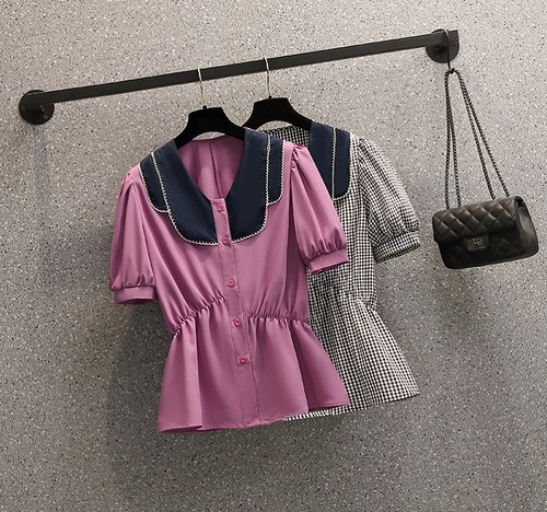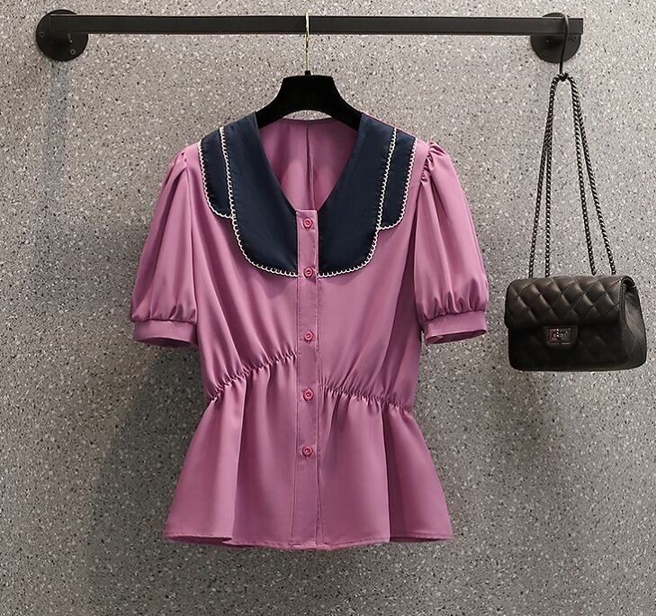 【大きいサイズL-4XL】【春夏新作】ファッションブラウス♪パープル/ブラック2色展開◆#schmnf-253127
