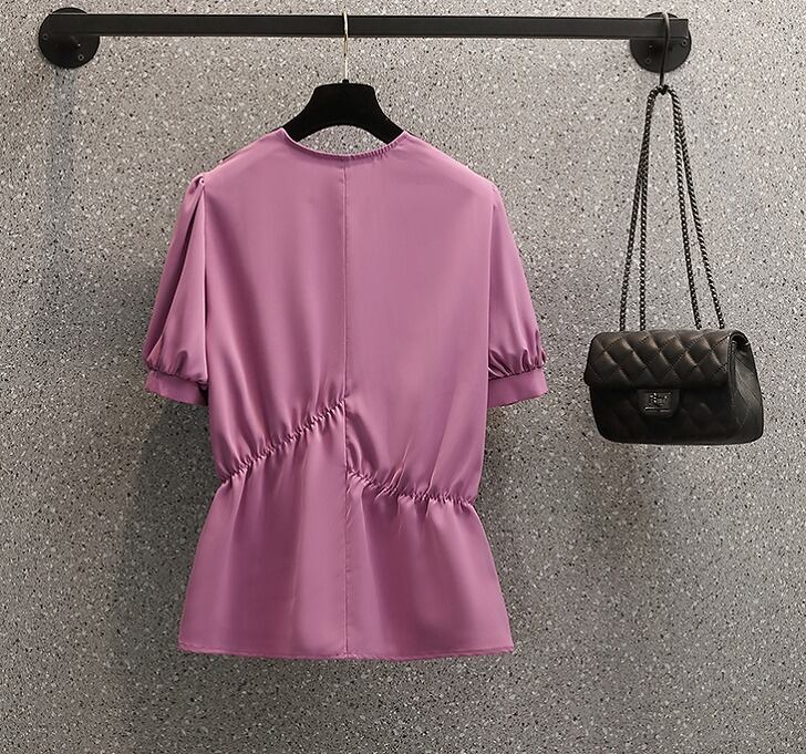 【大きいサイズL-4XL】【春夏新作】ファッションブラウス♪パープル/ブラック2色展開◆