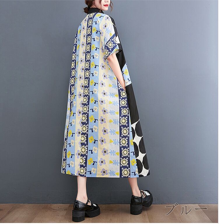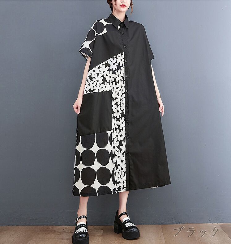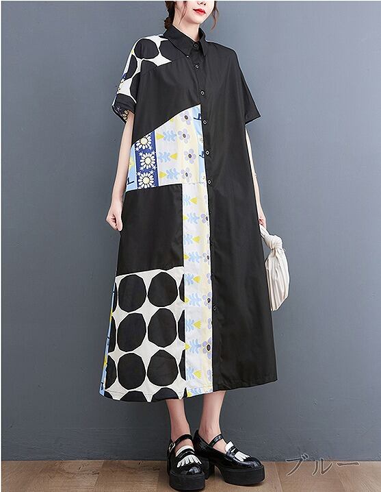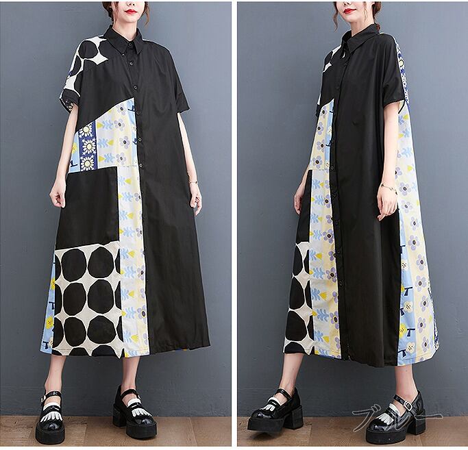 【春夏新作】ファッションワンピース♪ブラック/ブルー2色展開◆#sedmmf-239997