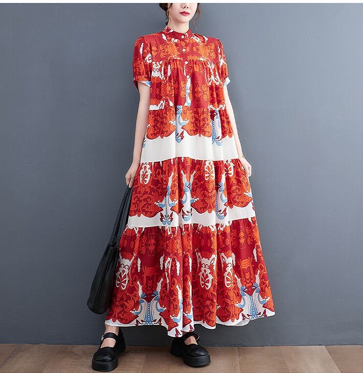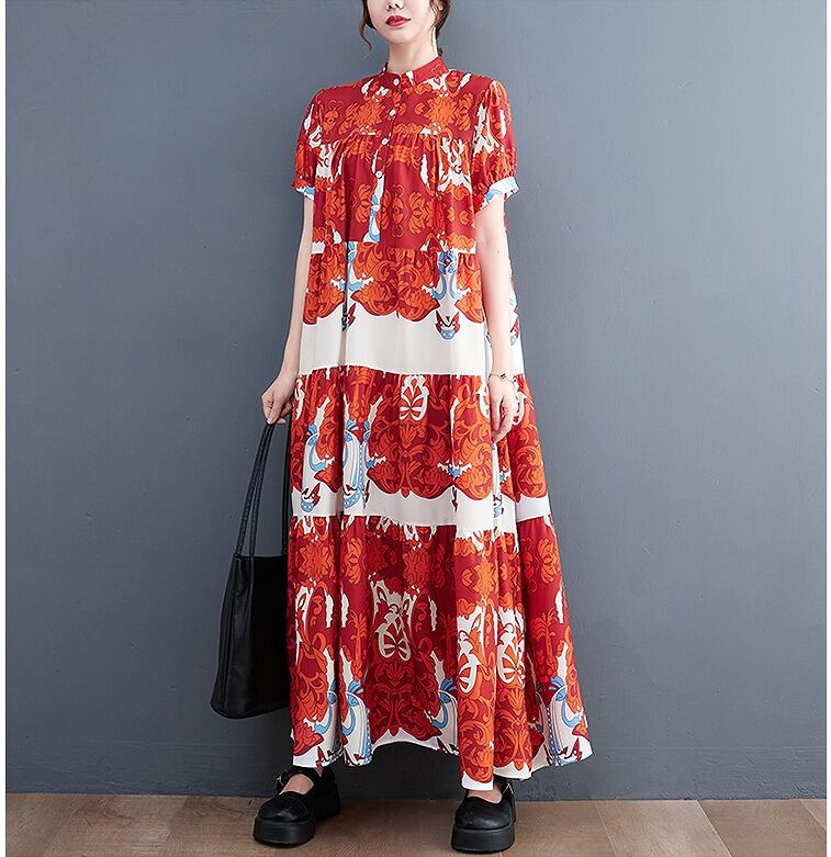 【春夏新作】ファッションワンピース♪アカ/ブルー2色展開◆#sedmmf-298887