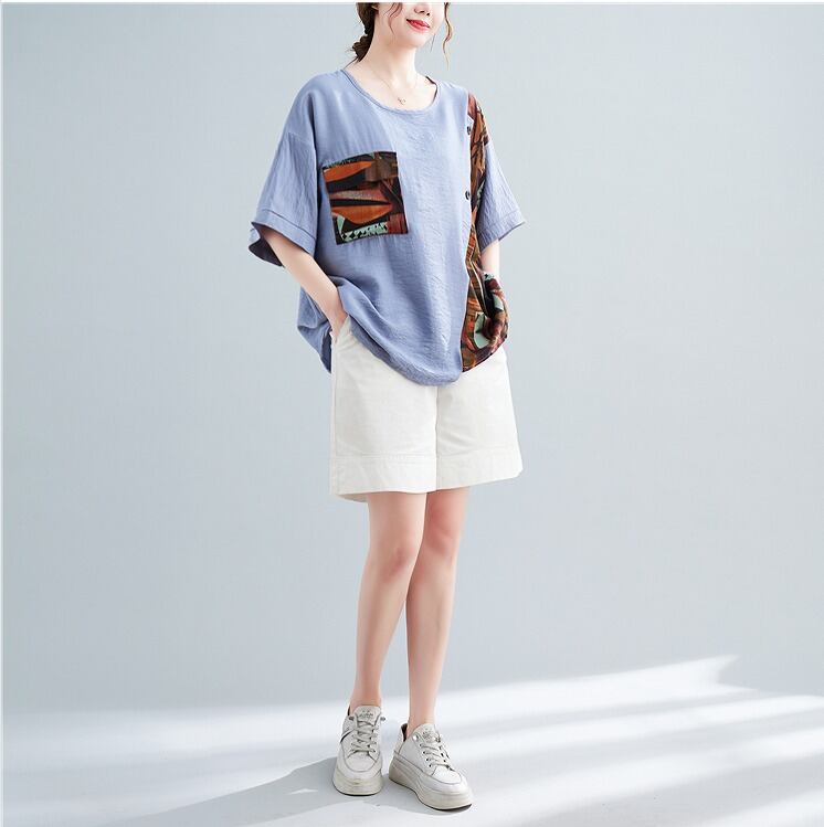 【春夏新作】ファッションTシャツ♪ブルー/ブラック2色展開◆#sbsmc-22981a7
