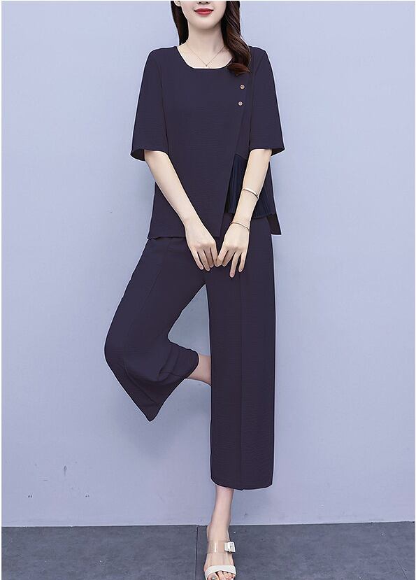 【大きいサイズL-5XL】【春夏新作】ファッション/上下セットTシャツ♪アンズ/ブルー2色展開◆