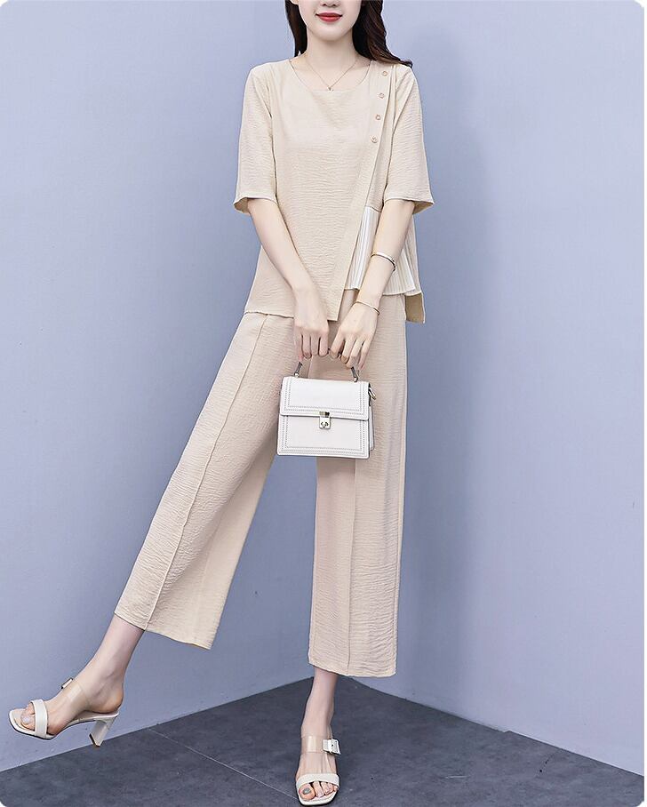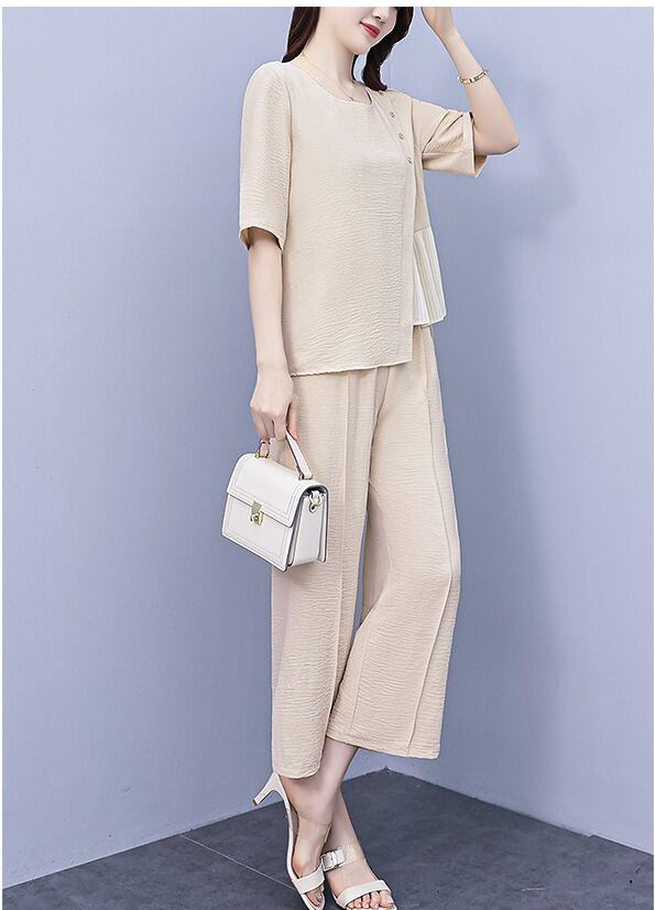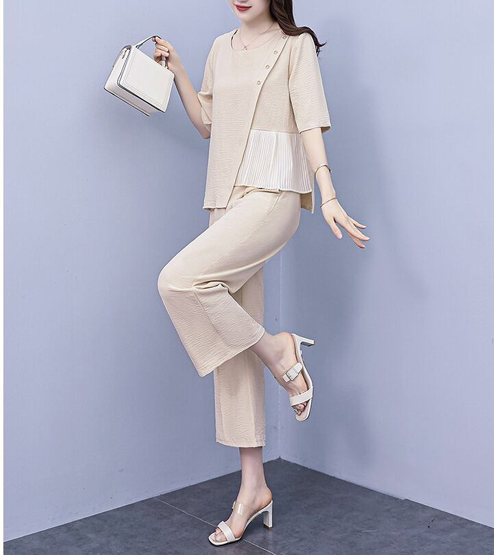 【大きいサイズL-5XL】【春夏新作】ファッション/上下セットTシャツ♪アンズ/ブルー2色展開◆#setn-229867