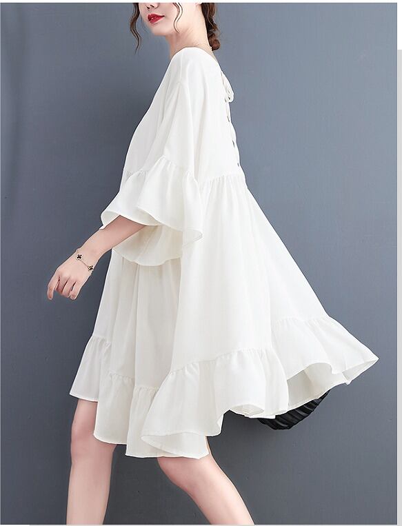 【春夏新作】ファッションワンピース♪ブラック/ホワイト2色展開◆#secmhf-202087