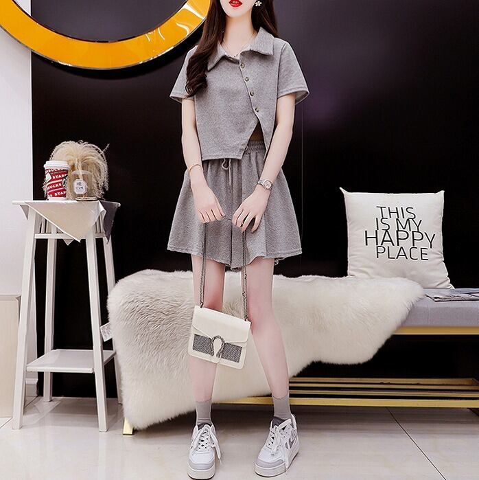 【春夏新作】ファッション/上下セットトップス♪ブラック/グレー2色展開◆