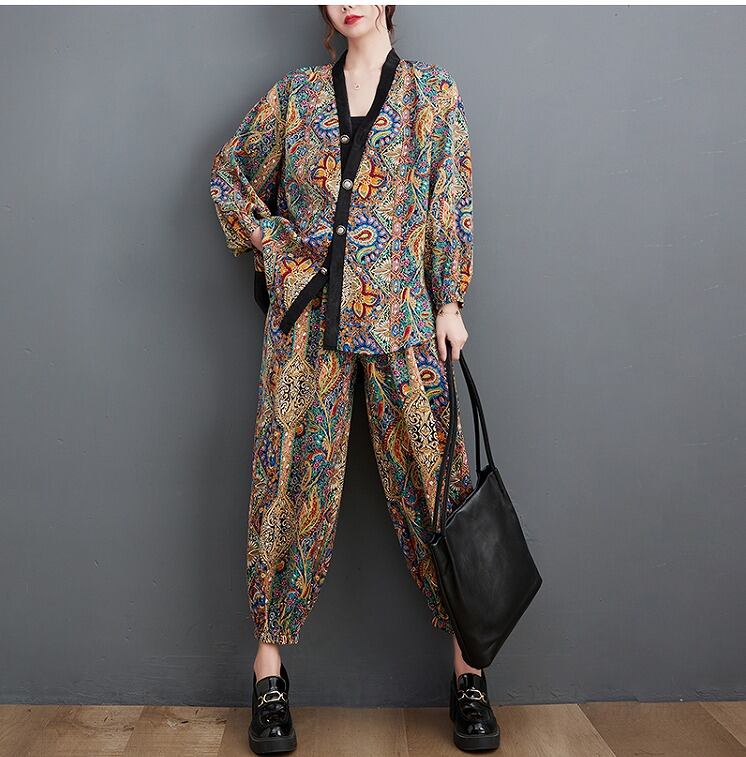 【L】ウエスト約64-104cm 丈約78cm ヒップ約144cm バスト約132cm 肩幅約54cm 袖丈約45cm ズボンの丈約96cm 【XL】ウエスト約66-106cm 丈約80cm ヒップ約144cm バスト約138cm 肩幅約56cm 袖丈約47cm ズボンの丈約96cm ※平置きで採寸ですので、2-3CMの誤差が生じる場合がございます