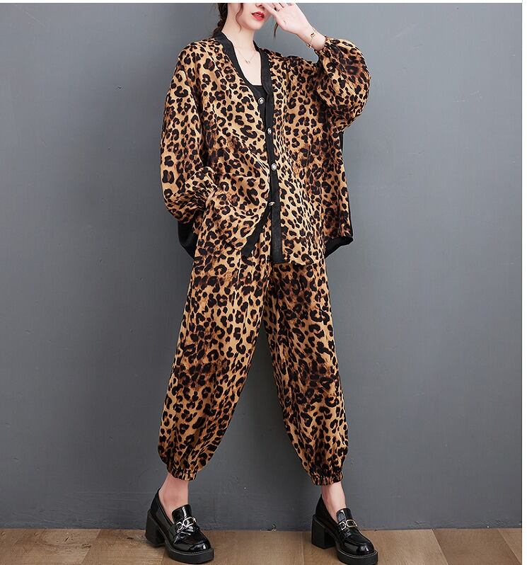 【春夏新作】ファッション/上下セットトップス♪フラワー/ヒョウ2色展開◆