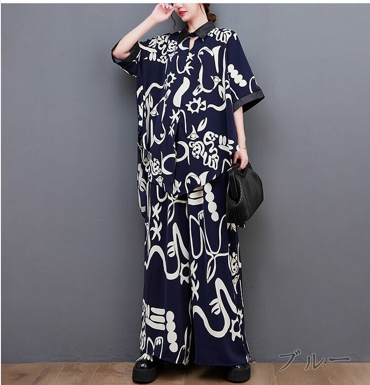 【春夏新作】ファッション/上下セットトップス♪ブラック/ブルー2色展開◆#secmio-273537
