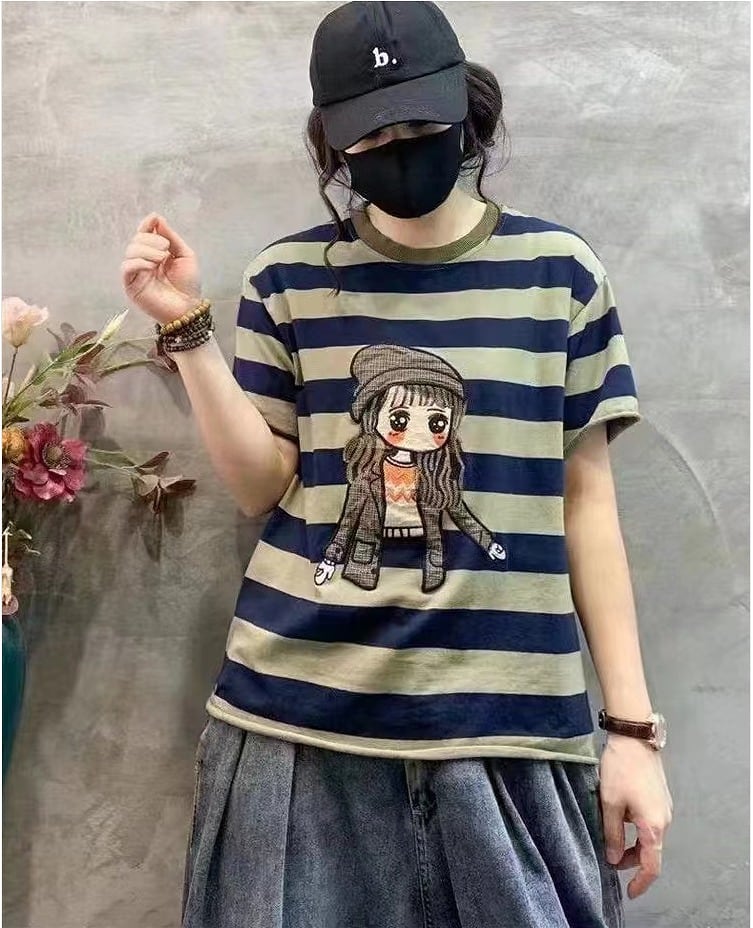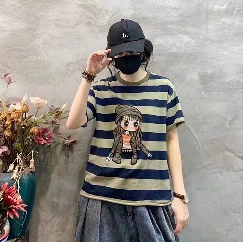 【春夏新作】ファッションTシャツ♪オレンジ/ブルー2色展開◆#serho-224577