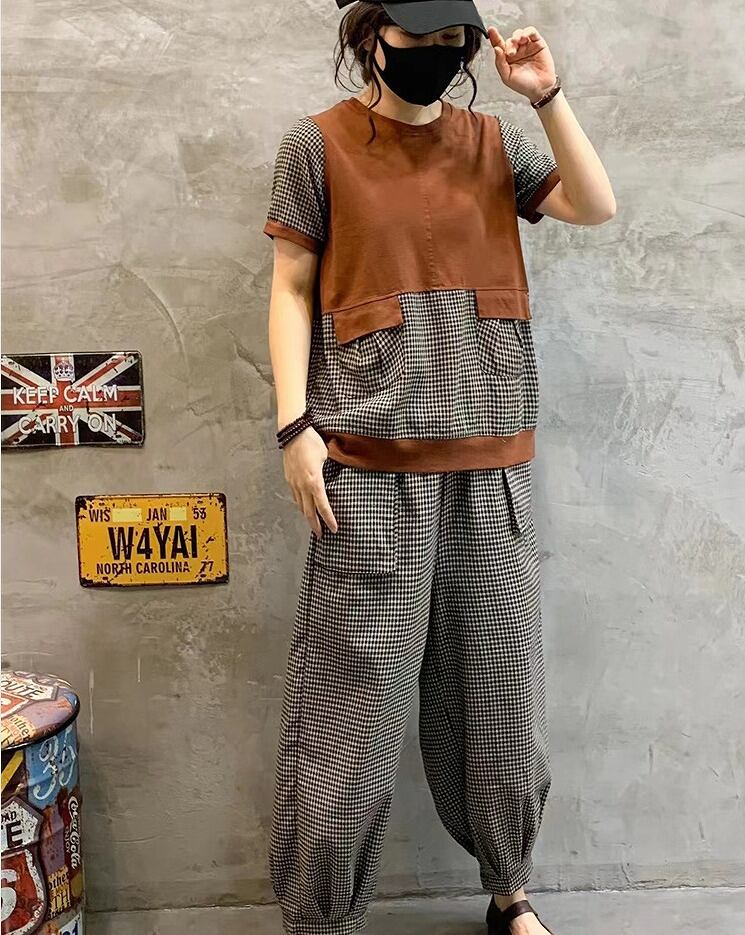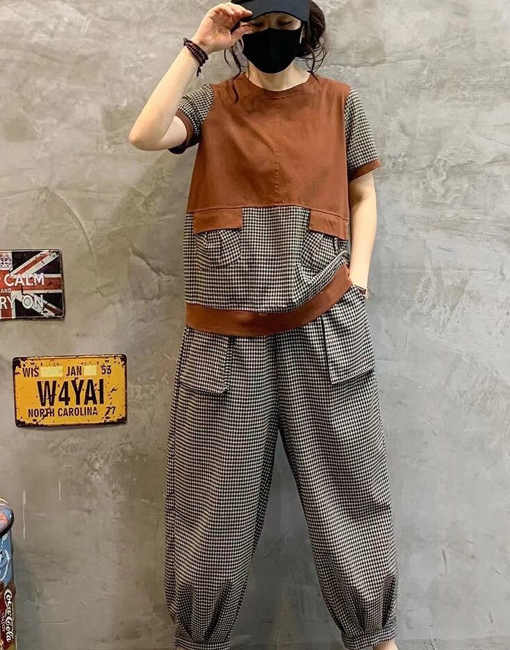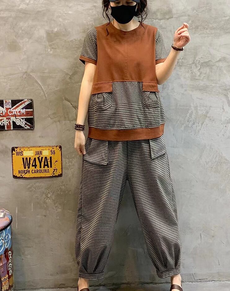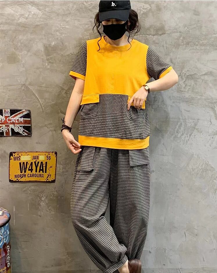 【春夏新作】ファッション/上下セットトップス♪ブラウン/イエロー2色展開◆#serho-23457a7 セットアップ
