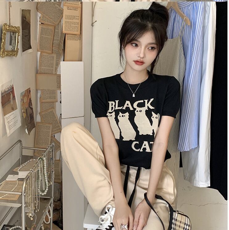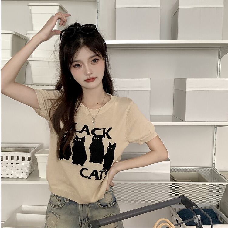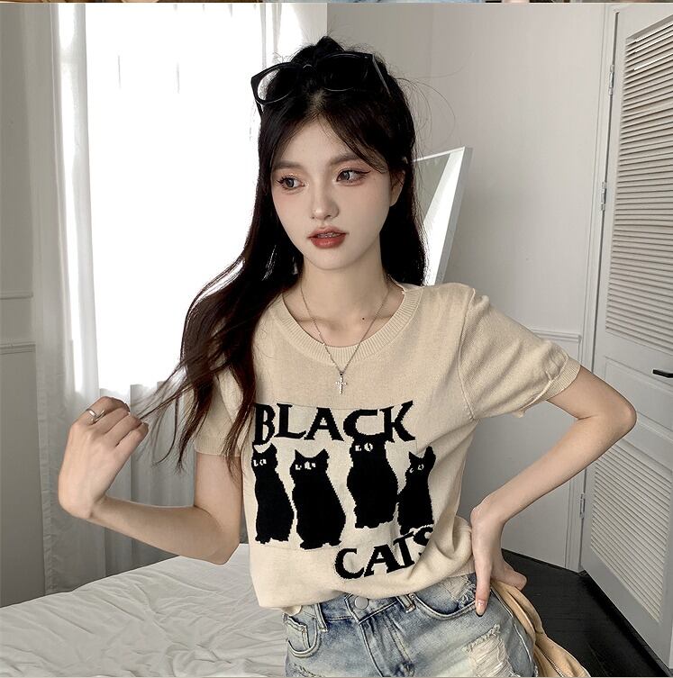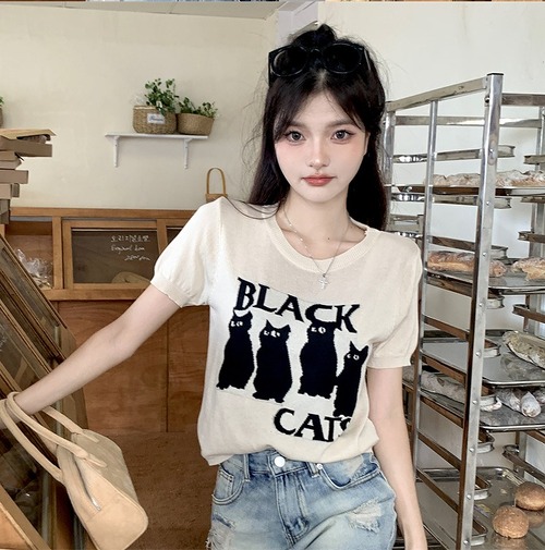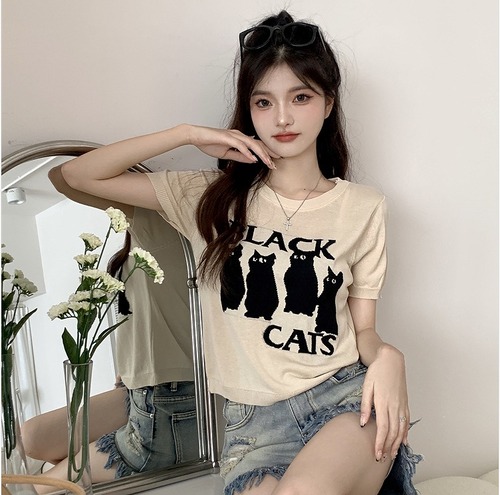 【大きいサイズXL-4XL】【春夏新作】ファッショントップス♪ブラック/アンズ2色展開◆#sermc-259517 猫