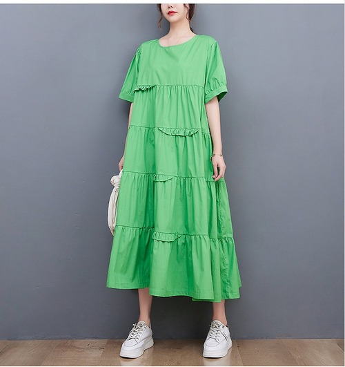 【春夏新作】ファッションワンピース♪グリーン/ブラック2色展開◆#sedmmf-289887