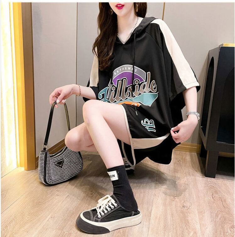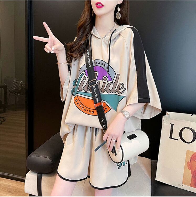 【春夏新作】ファッション/上下セットTシャツ♪アンズ/ブラック2色展開◆#stbfot-2f69517