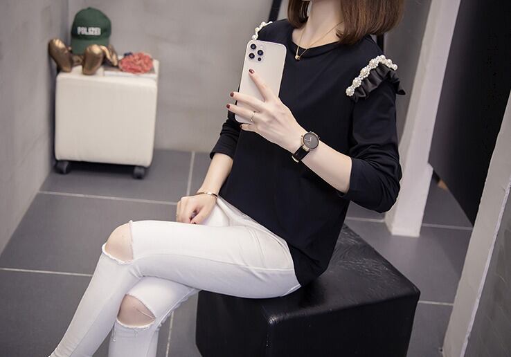 【大きいサイズXL-4XL】【秋冬新作】ファッションTシャツ♪ブラック/ホワイト2色展開◆