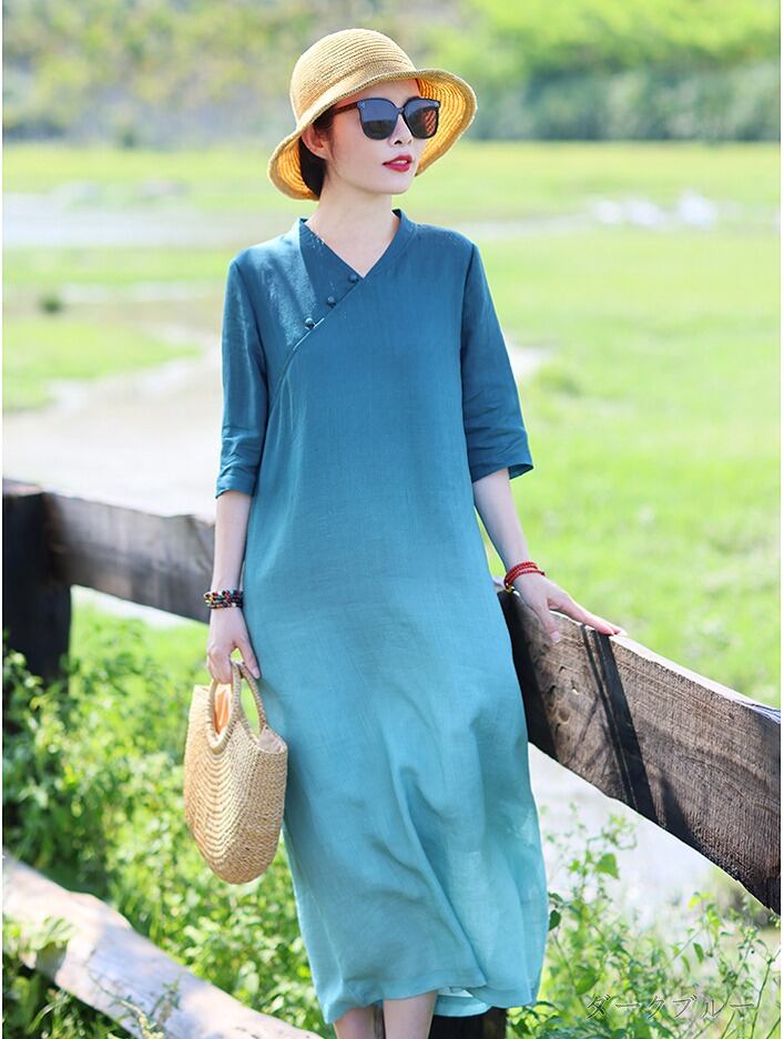 【春夏新作】ファッションワンピース♪ダークブルー/ライトブルー2色展開◆#sedmsh-211397