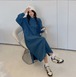 【大きいサイズXL-4XL】ファッションワンピース♪ブラック/ブルー2色展開◆