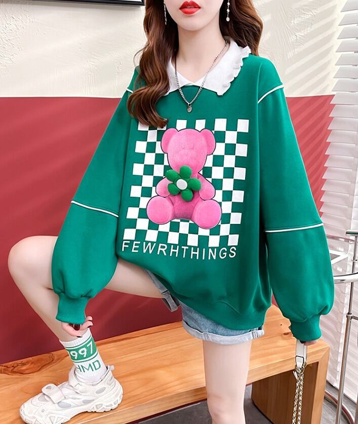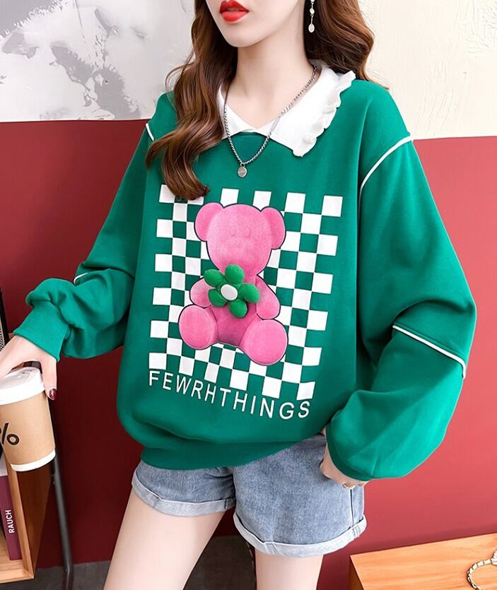 【秋冬新作】ファッショントップス♪ホワイト/グリーン2色展開◆#stbfot-2km03057