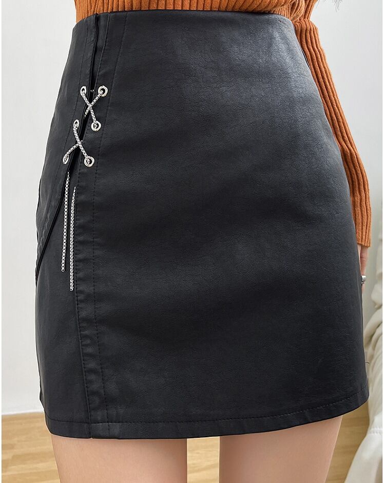 【大きいサイズL-4XL】【秋冬新作】ファッションミニスカート♪ブラック/ブラウン2色展開◆#sertm-281627