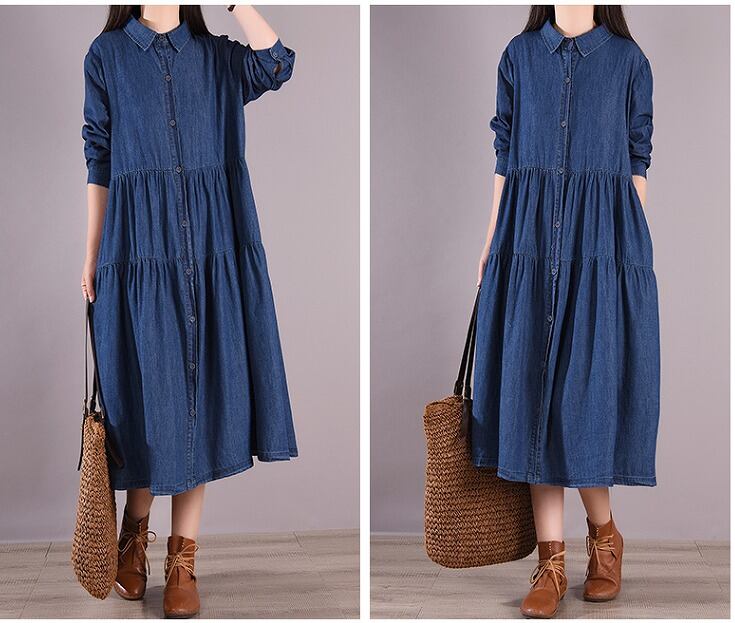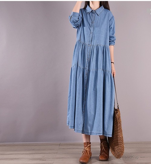 【秋冬新作】ファッションワンピース♪ダークブルー/ライトブルー2色展開◆#serfm-238897