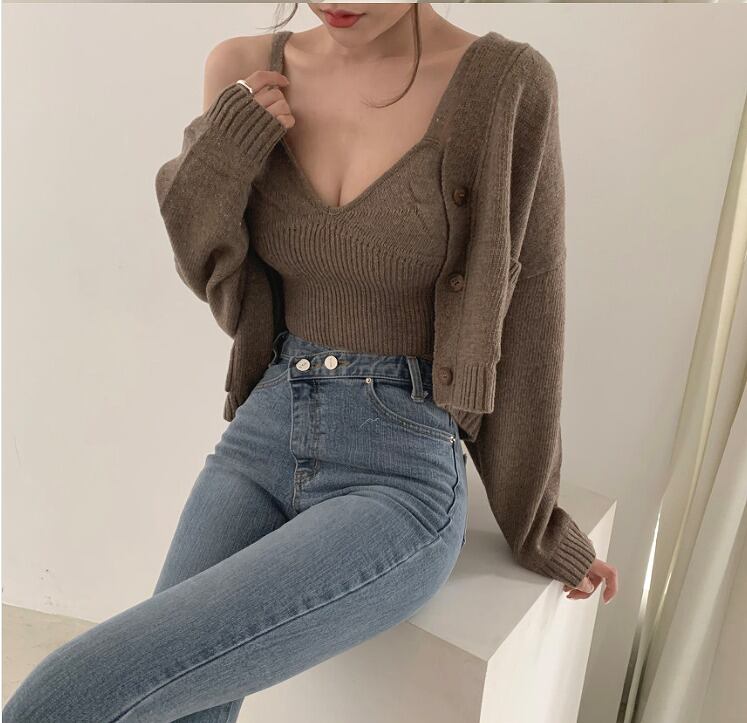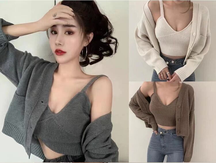 【秋冬新作】ファッション/2枚セットセーター♪グレー/ホワイト/ブラウン3色展開◆