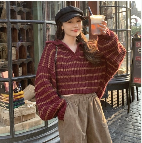 【秋冬新作】ファッションセーター♪アカ/パープル/グレー3色展開◆#scommo-214097