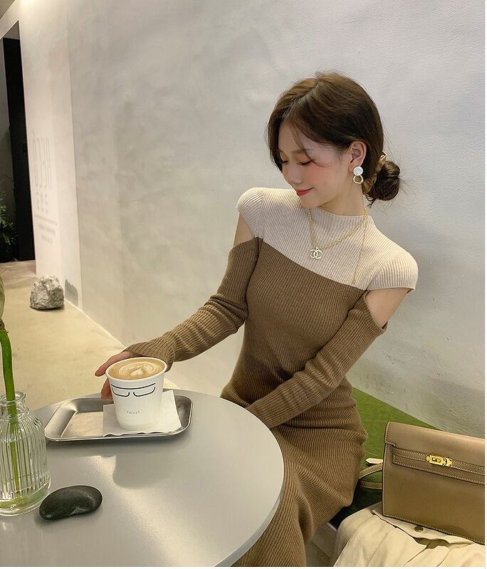 【秋冬新作】ファッションワンピース♪グレー/ブラック/ブラウン3色展開◆#scommo-233537