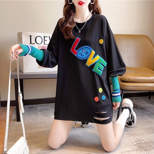【秋冬新作】ファッションTシャツ♪ホワイト/ブラック2色展開◆#sebotv-2kt327