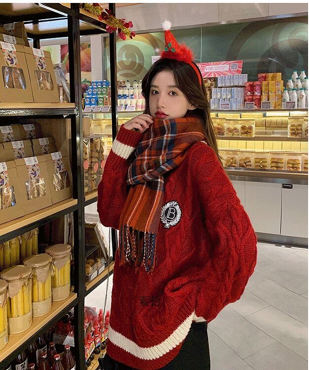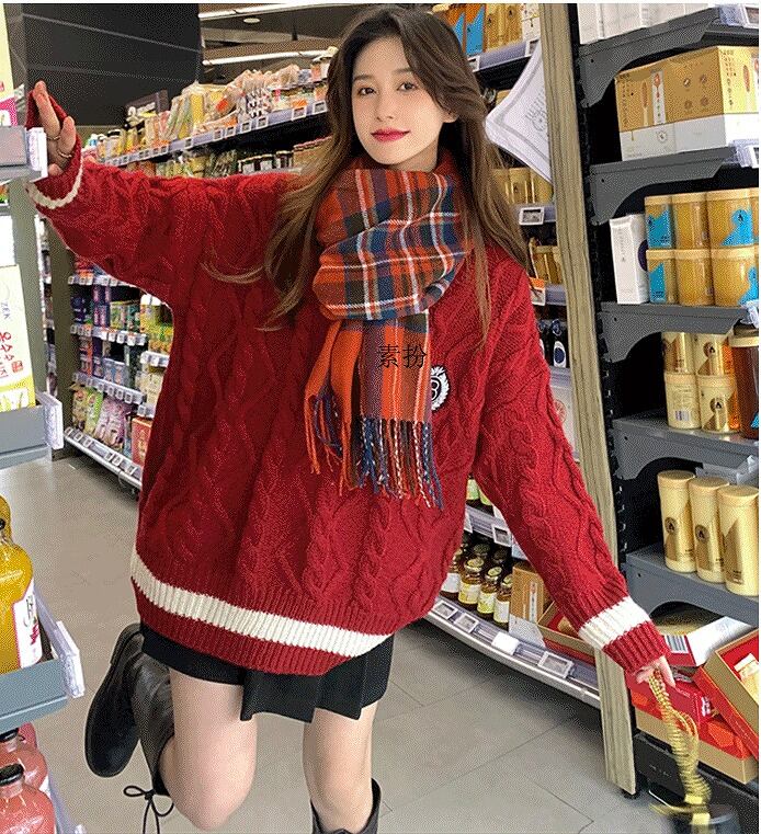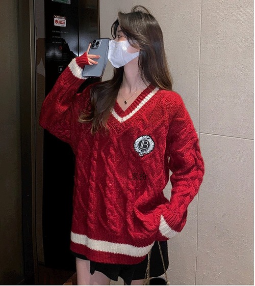【秋冬新作】ファッションセーター♪アカ/ホワイト2色展開◆#scommo-299097