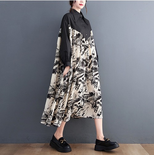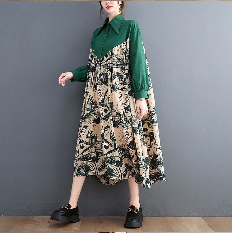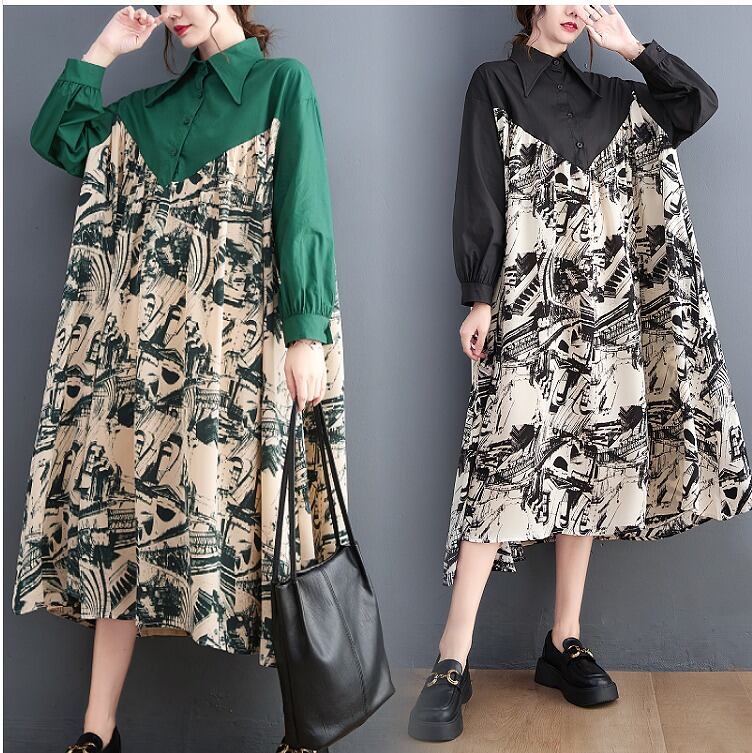 【秋冬新作】ファッションワンピース♪グリーン/ブラック2色展開◆#seboio-274357